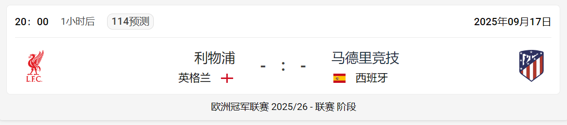 体育新闻 2025年09月17日利物浦马德里竞技:足球比赛概述与实时更新 联赛 阶段阶段的欧洲冠军联赛 2025/26即将开始,又将有一场足球比赛。利物浦 (英格兰)对阵马德里竞技 (西班牙)定于星期三 2025年09月17日进行,所以记得在20:00调整频道。 书籍商认为,根据利物浦 对 马德里竞技 的赔率列表,利物浦 明显是最受青睐的。据估计,利物浦 有 63% 的赢得足球比赛的几率,而 马德里竞技 是弱者,力争获得 15% 的胜算,以及 21% 的平局几率。