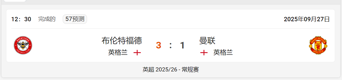 体育网福利 2025年09月27日布伦特福德曼联:足球比赛概述与实时更新 布伦特福德 (英格兰) 与 曼联 (英格兰) 之间的足球比赛于星期六 2025年09月27日 在 12:30 结束,比分为3 : 1,有利于 布伦特福德。这场比赛是 常规赛 的一部分英超 2025/26。 由于比赛已经结束,因此布伦特福德对阵曼联的投注已不再接受和可用。